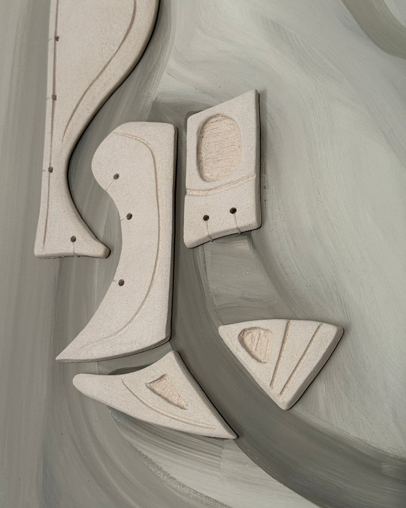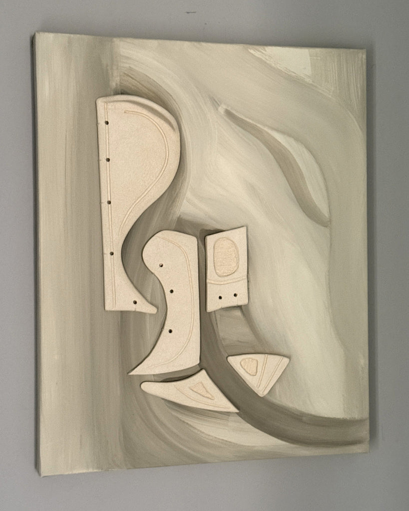 An original acrylic and ceramic artwork on canvas, combining mixed media techniques to create a unique piece. Measuring 50x40 cm, this composition is part of the Tramos collection, developed throughout 2025. The integration of ceramic elements with acrylic generates textures and depth that create a dialogue between the two-dimensionality of the canvas and the volume of the material. A contemporary approach that explores the intersection of traditional artistic disciplines, resulting in a one-of-a-kind work.